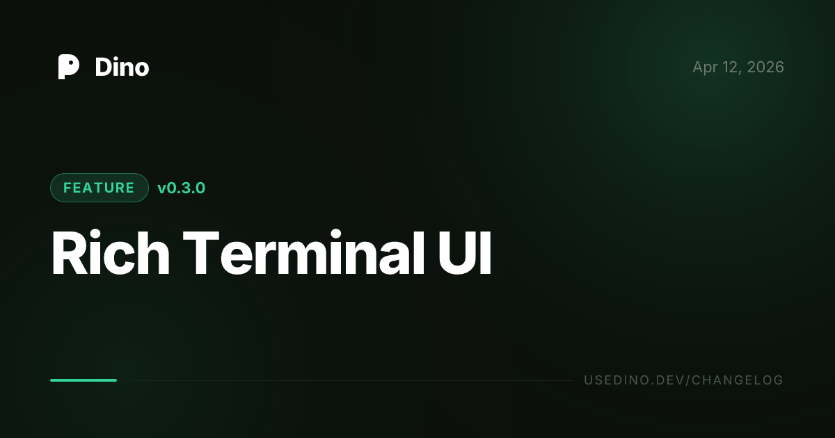 DinoHeader,SummaryCard,HealthBadge,StatusIcon,DinoSpinner,ErrorPanel,Divider,ProgressBar,NextStep,FindingsTable,DiffBadge) with per-command views for scan, watch, diff, validate, lint, changelog, and init - ASCII dino header — branded terminal header with version, tenant, and environment metadata
